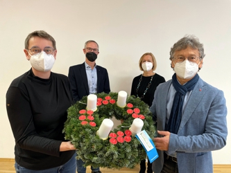 Vorweihnachtszeit einen Adventkranz überreicht als Zeichen der freundschaftlichen Verbundenheit.