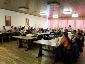 Frauenvorsitzende Claudia Werkhausen zirka 50 Besucherinnen im Gasthaus Landerl begrüßen.