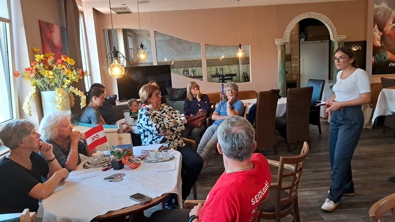 Frauencafe und mehrDie SPÖ-Frauen Gallneukirchen luden am 21.September 2024 alle interessierten Frauen zu einem „Frauencafe und mehr“ ins Stadtcafe Leon. „Mehr“, das war nicht nur ein leckeres Frühstück nach Wahl, sondern auch die Überreichung der „MARIE“ an die Teilnehmerinnen, sowie ein kleines Programm. Laura Wiednig (stehend), die Landesgeschäftsführerin der SPÖ-Frauen OÖ stellte die MARIE vor, ein Nachschlagewerk für Frauen in ganz OÖ, einerseits zu Martin Seidl (vorne, im roten „Seidl-T-Shirt“), Vorsitzender unserer Stadtpartei und NR-Spitzenkandidat für UU erklärte, warum für ihn „Gleichberechtigung, In der Mitte die SPÖ-Frauenvorsitzende, Christine Edhoffer. Sie bat die Teilnehmerinnen am Ende um Rückmeldungen. Alle hoben die angenehme, fast familiäre |