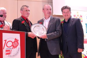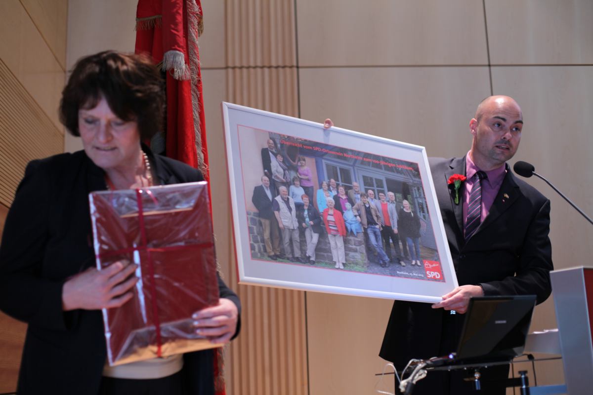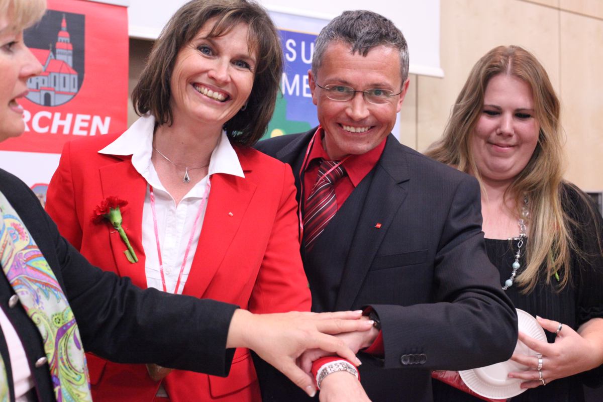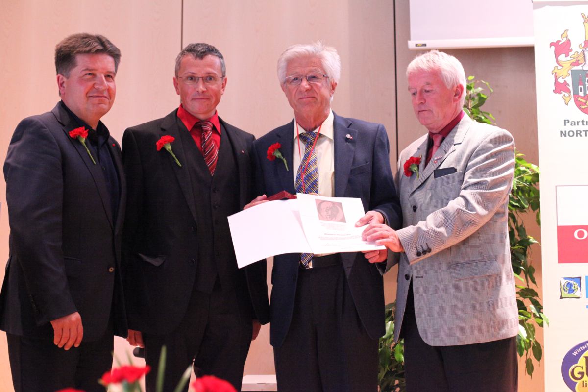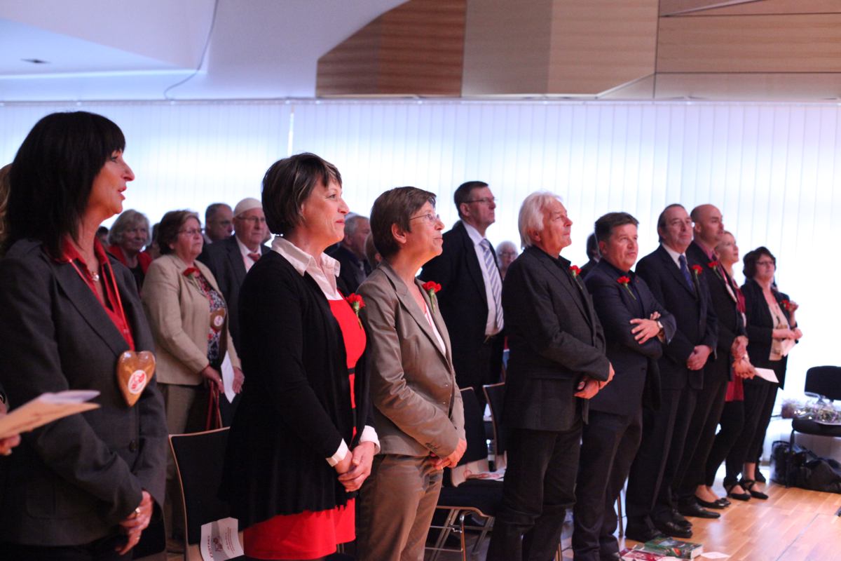 Stadtparteivorsitzender Martin Seidl durfte Gesundheitsminister Alois Stöger und eine große Abordnung der SPD Northeim, Gallneukirchens Partnerstadt, begrüßen. Das unwirtliche Wetter hielt viele Mitglieder und Sympathisanten nicht davon ab, am folgenden Festzug zur Landesmusikschule teilzunehmen, in welcher der eigentliche Festakt stattfand. Hier gab es vor über 200 Gästen ein buntes Programm, bei dem die Geschichte der SPÖ Gallneukirchen Revue passieren gelassen wurde. Neben Bundesminister Stöger waren auch Landesrat Reinhold Entholzer und der scheidende Bezirksvorsitzende Josef Eidenberger anwesend, die in ihren Ansprachen auf die Rolle der Sozialdemokratie für die Lebensbedingungen der Menschen in den letzten 100 Jahren im Allgemeinen und die Bedeutung der SPÖ Gallneukirchen im Mühlviertel im Besonderen eingingen. Nach historischen Streifzügen erhielten Wilhelm Heidinger und Hans Karl die Viktor-Adler-Plakette für ihre langjährige Tätigkeit und Mitgliedschaft in der SPÖ. Langzeitvorsitzender Fritz Wurm wurde für seine 21jährige Vorsitzführung ebenfalls geehrt. Weiters wurde die knapp 150-seitige Festschrift und die Sondermarke zum 100-Jahr-Jubiläum vorgestellt. Umrahmt wurde das Programm von einer jungen Band, die in einer pfiffigen Zusammenstellung moderner und traditioneller Nummern das Publikum begeisterte.