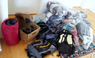 Schuhe, Thermoskannen und dergleichen wurden gesammelt und für den Weitertransport nach Bosnien verpackt,