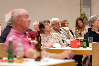 Die zahlreichen Besucher und Besucherinnen konnten sich im großen Saal endlich wieder persönlich