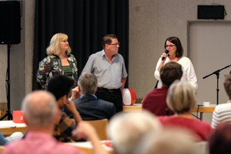 wünschte, begrüßt. Bezirksspitzenkandidatin Beverley Allen-Stingeder stellte sich ebenfalls