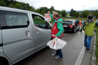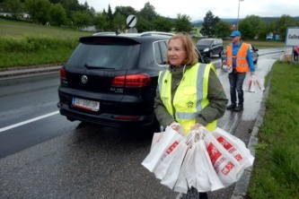 Mit Unterstützung fleißiger MithelferInnen verteilten sie 200 „Stausackerl“, gefüllt mit