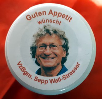 „Guten Appetit wünscht Vizebgm. Sepp Wall-Strasser“ Etikett und stellte sie mit der