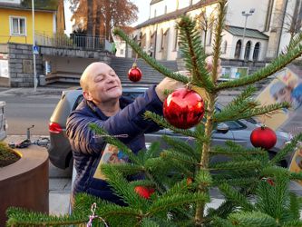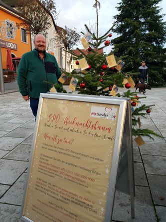 der SPÖ Gallneukirchen ein Christbaum aufgestellt, an dem viele Spendenkärtchen mit verschiedenen Beträgen